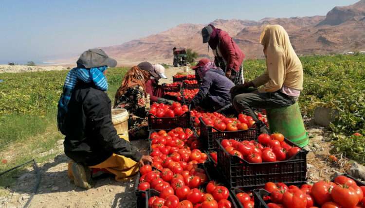 الشمس تتوسط السماء، وتصب لهيبها على رؤوس العاملين في قطاف محصول الأرض المكشوفة تمامًا في إحدى القطع الزراعية في غور الحديثة التابعة للواء الأغوار الجنوبية بمحافظة الكرك.