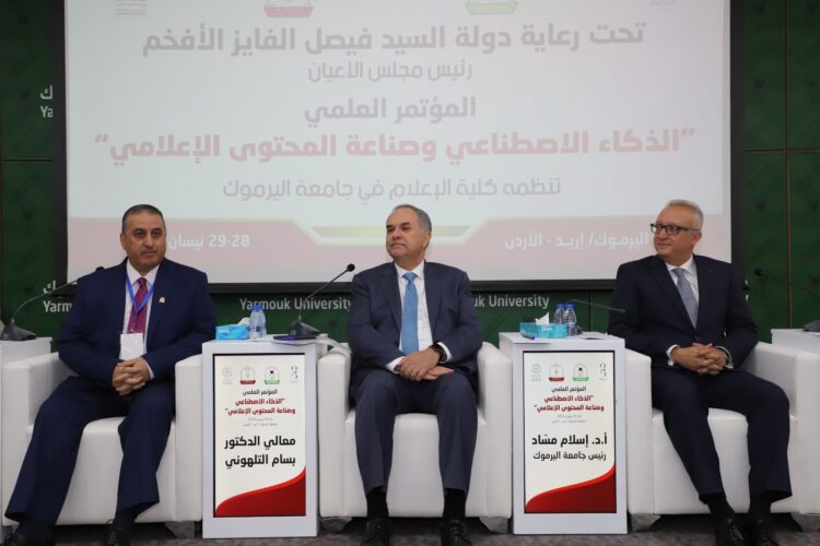 مندوبا عن رئيس مجلس الأعيان، رعى العين الدكتور بسام التلهوني، بحضور رئيس جامعة اليرموك الدكتور إسلام مسّاد، افتتاح فعاليات المؤتمر العلمي الدولي الذي تنظمه كلية الإعلام في جامعة اليرموك على مدار يومين، بعنوان “الذكاء الاصطناعي وصناعة المحتوى الإعلامي” في مبنى المؤتمرات والندوات.