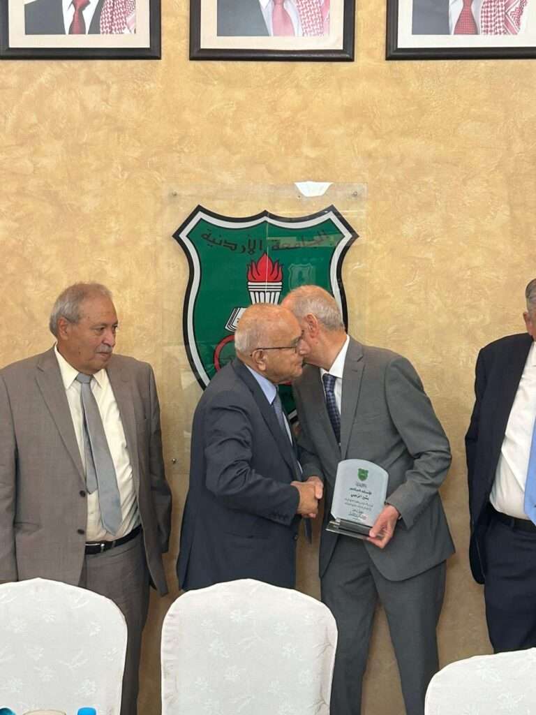 وقد جاء هذا التكريم خلال حفل أُقيم تحت رعاية دولة الأستاذ الدكتور عدنان بدران، رئيس مجلس أمناء الجامعة الأردنية، وبحضور معالي الأستاذ الدكتور نذير عبيدات، رئيس الجامعة، وعدد من أعضاء الهيئة التدريسية.