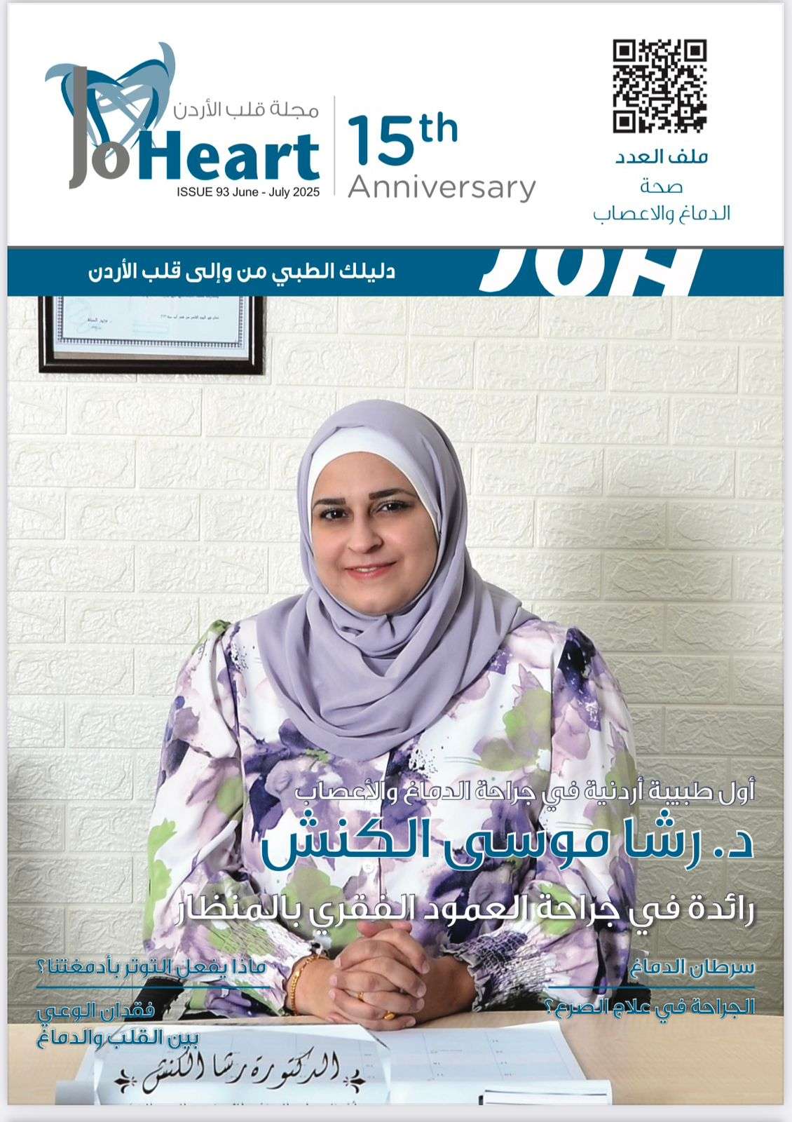 صدر العدد 93 من مجلة قلب الأرد (جوهارت الطبية)، وضم العدد، الذي يصدر للسنة الـ16 على التوالي مقالات متميزة حول موضوع امراض وجراحة الأعصاب والعمود الفقري، واستضاف نخبة من الأطباء والجراحين الأردنيين المتميزين بمجالهم، للحديث أكثر عن قصص نجاحهم وشغفهم بالعلم والعمل، وآخر ما توصل إليه الطب في تلك المجالات.