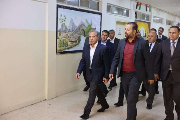 صدى الشعب – تفقد رئيس الوزراء، د. جعفر حسان تجمعاً للمدارس في الرصيفة والتقي مُعلمين وطلبة في مدرستيّ أسيد بن حضير الثانوية للبنين وخديجة بنت خويلد الثانوية للبنات، بحضور وزير التربية و التعليم العالي، د. عزمي محافظة، و محافظ الزرقاء، د. فراس أبو قاعود، و وزير الإدارة المحلية وليد المصري، وعدد من المرافقين.
