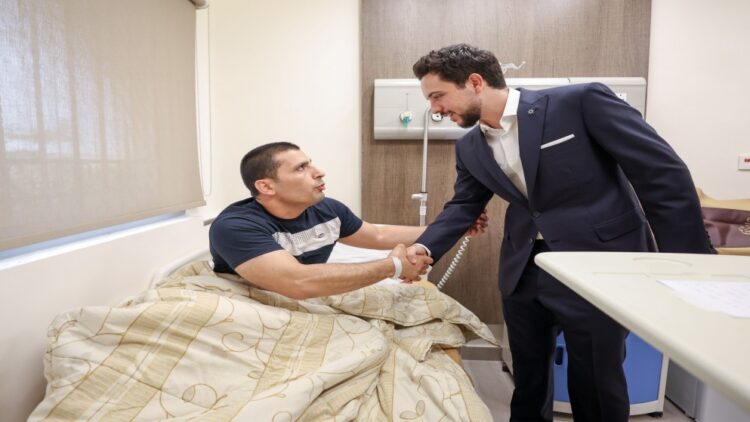 زار سمو الأمير الحسين بن عبدالله الثاني ولي العهد، الثلاثاء، مصابي المستشفى الميداني الأردني غزة/76، حيث يرقدون على أسرة الشفاء بمدينة الحسين الطبية، بعد إجلائهم من المستشفى الميداني في قطاع غزة، مساء الاثنين.