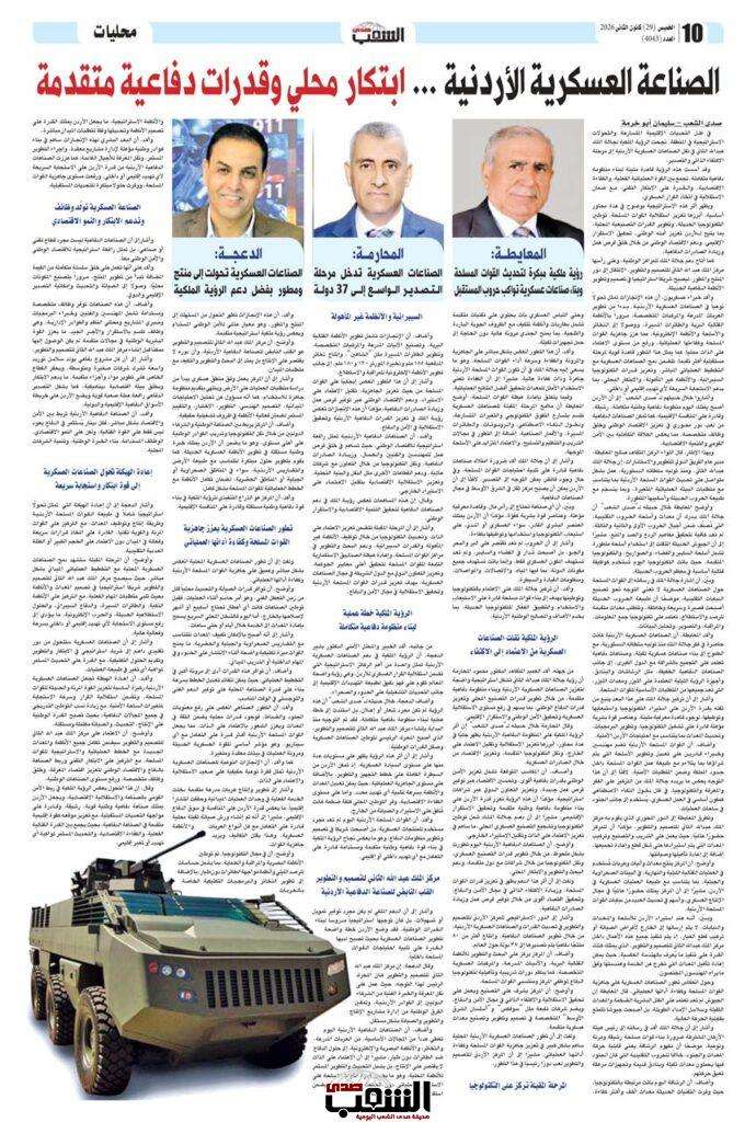 في ظل التحديات الإقليمية المتسارعة والتحولات الاستراتيجية في المنطقة ، نجحت الرؤية الملكية لجلالة الملك عبدالله الثاني بن الحسين في نقل الصناعات العسكرية الأردنية إلى مرحلة الاكتفاء الذاتي والتصدير.