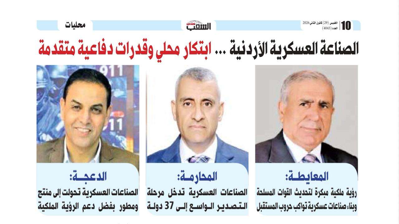 وقال إن هذا التحول يعكس الرؤية الملكية في ربط الأمن القومي بالصناعة والاستقلالية الاقتصادية، ويجعل الأردن يمتلك صناعة دفاعية وطنية قوية، رشيقة، وقادرة على مواجهة التحديات المستقبلية، مع تعزيز موقعه كقوة إقليمية متقدمة في الصناعة الدفاعية، بحيث يجمع بين القدرة القتالية الفعلية، والكفاءة الاقتصادية، والتحديث المستمر لمواكبة أي تهديد أو تغير إقليمي.