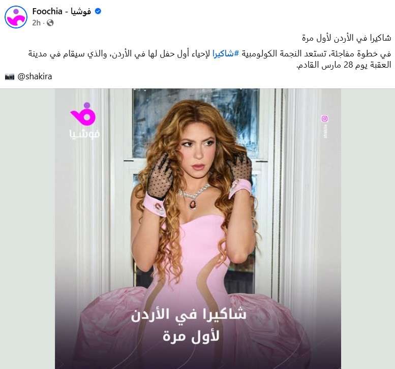 في خطوة مفاجئة، تستعد النجمة الكولومبية #شاكيرا لإحياء أول حفل لها في الأردن، والذي سيقام في مدينة العقبة يوم 28 مارس القادم.