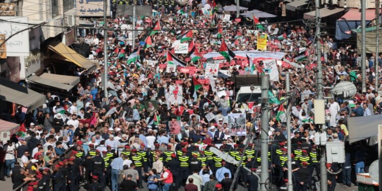 صدى الشعب – شهدت العاصمة عمان ومحافظات المملكة، مسيرات بعد صلاة الجمعة ، شاركت فيها فعاليات حزبية وشعبية وشبابية منددة بحرب الإبادة الجماعية التي ترتكبها قوات الاحتلال بحق المدنيين في القطاع والتي راح ضحيتها عشرات الآلاف من الشهداء والجرحى جلهم من الأطفال والنساء.