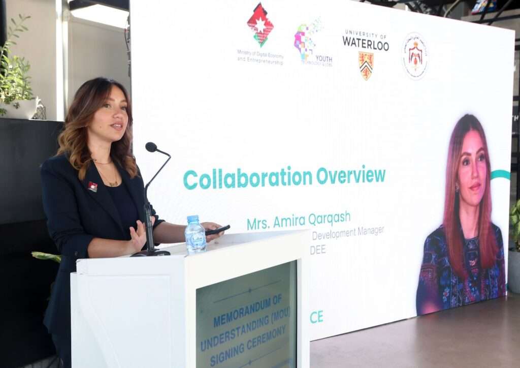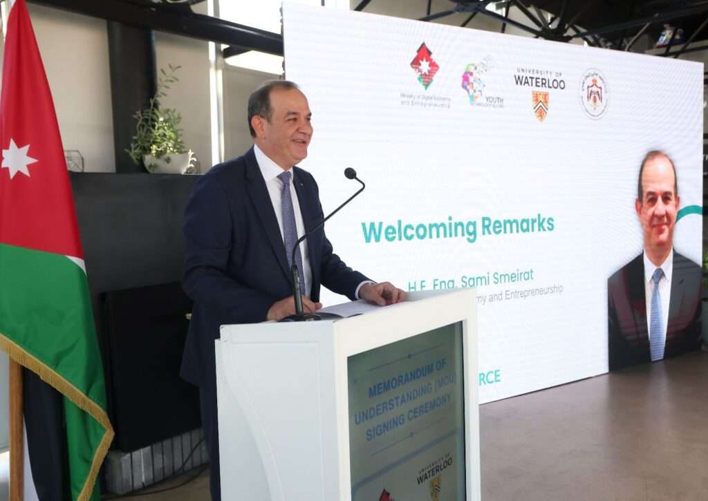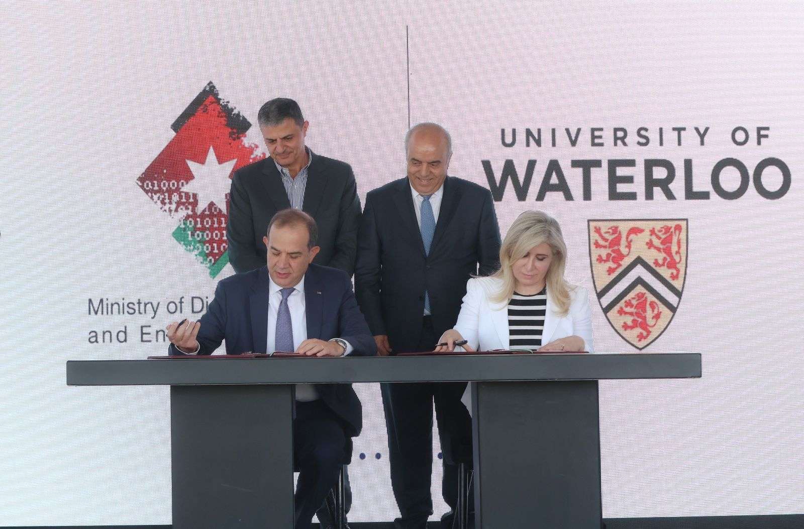 ووقّع الاتفاقية عن الجانب الأردني وزير الاقتصاد الرقمي والريادة، المهندس سامي سميرات، وعن جامعة واترلو الدكتورة بسمة المومني، نائب رئيس الجامعة المساعد للشؤون الدولية وأستاذة في الجامعة، وذلك بحضور معالي وزير التربية والتعليم ووزير التعليم العالي والبحث العلمي، الدكتور عزمي محافظة، ومشاركة عدد من ممثلي المؤسسات الحكومية، والجهات المانحة، وشركات الاتصالات وتكنولوجيا المعلومات، إلى جانب رؤساء الجامعات الأردنية ومزودي خدمات التدريب.