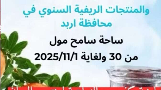 تنطلق غدًا الخميس فعاليات مهرجان الرمان والمنتجات الريفية السنوي لعام 2025، الذي تنظمه جمعية تعاونية كفرسوم الزراعية لمنتجي الرمان في ساحة سامح مول بمدينة إربد، بمشاركة 82 مشاركًا من مختلف مناطق المحافظة. ويستمر المهرجان حتى مساء السبت الأول من تشرين الثاني، ويستقبل زواره يوميًا من الساعة العاشرة صباحًا وحتى العاشرة مساءً، برعاية رئيس بلدية إربد الكبرى عماد العزام.