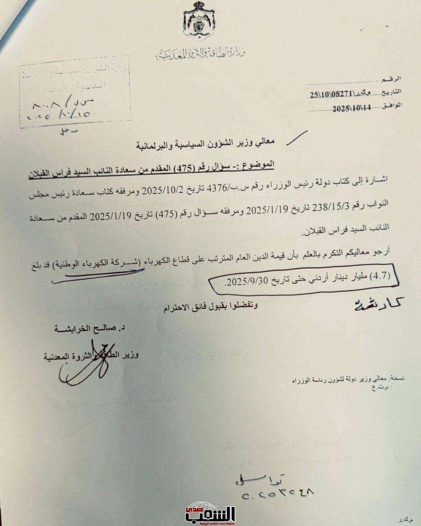 وقال القبلان في تصريح له إن السؤال النيابي رقم (475) وُجّه بتاريخ 19 كانون الثاني 2025 إلى دولة رئيس الوزراء، إلا أن الرد الحكومي ورد مؤخرًا من أربع جهات فقط، فيما لم تجب بقية المؤسسات حتى الآن.