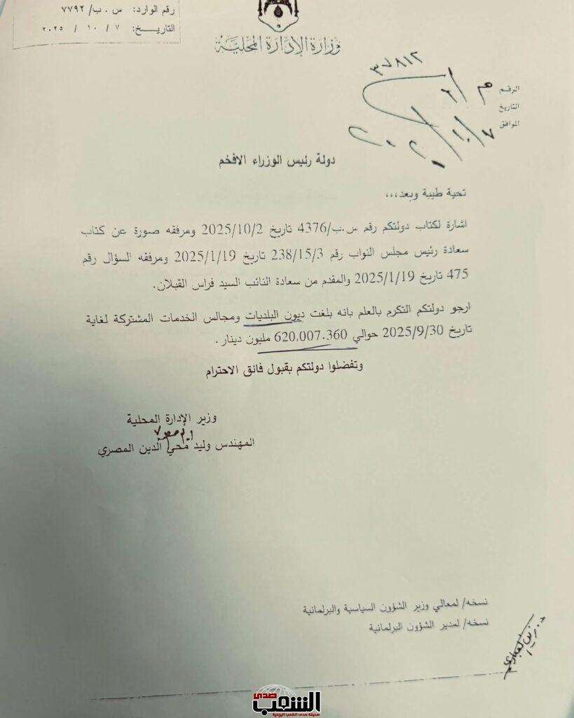 • البلديات ومجالس الخدمات المشتركة: 620 مليون دينار.
