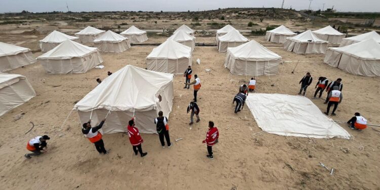 صدى الشعب – كشف الهلال الأحمر المصري عن إقامته مخيمات ضخمة بطلب من القيادة السياسية المصرية جنوب غرب خان يونس بقطاع غزة.