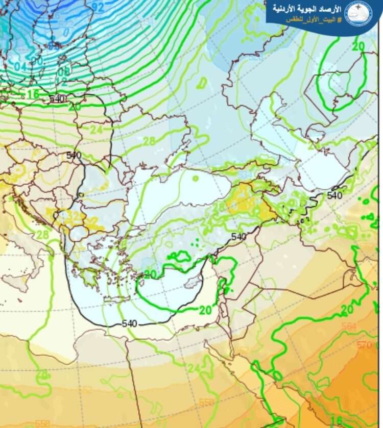 يستمر الطقس بارداً جداً وغائماً، مع هطول الأمطار، بإذن الله، في أغلب المناطق، خاصة الأجزاء الغربية. تكون الهطولات غزيرة أحياناً، ومصحوبة بالرعد وتساقط حبات البرد، ما يزيد من خطر تشكل السيول في الأودية والمناطق المنخفضة، بما فيها منطقة البحر الميت. تشير التوقعات إلى احتمال تساقط زخات ثلج ممزوجة بالمطر لفترة قصيرة وغير مؤثرة فوق قمم جبال الشراة خلال ساعات الفجر.