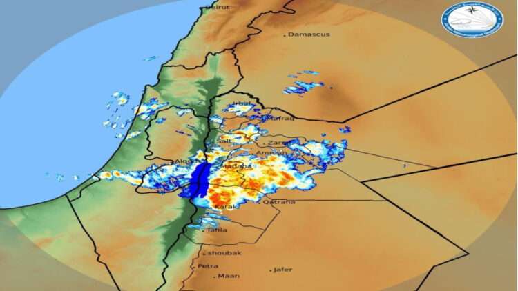 صدى الشعب – أشارت صور رادار الطقس الصادرة عن إدارة الأرصاد الجوية إلى أن الهطولات المطرية تتراوح بين المتوسطة والغزيرة، تؤثر على أجزاء واسعة من محافظة العاصمة ومأدبا، فيما تتجه الهطولات الغزيرة حاليا نحو الجنوب الغربي، حيث تشهد محافظة الكرك أمطارا غزيرة.