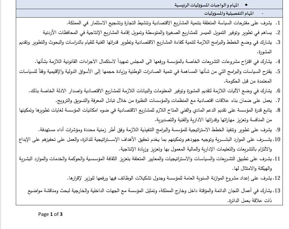 صدى الشعب – أعلنت رئاسة الوزراء عن توفر شاغر وظيفة  المدير التنفيذي للمؤسسة الأردنية لتطوير المشاريع الاقتصادية.