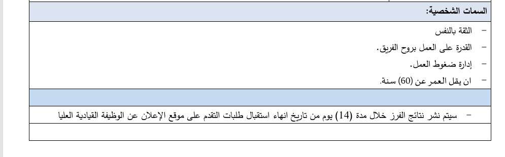 ودعت من تتوافر فيه متطلبات إشغال الوظيفة التقدم بطلب من خلال الرابط الالكتروني على موقع رئاسة الوزراء (https://empreq.pm.gov.jo) على ان يرفق مع الطلب السيرة الذاتية وصور عن المؤهلات العلمية والشهادات المهنية وشهادات الخبرة والوثائق المعززة للكفايات القيادية والادارية المطلوبة للوظيفة.