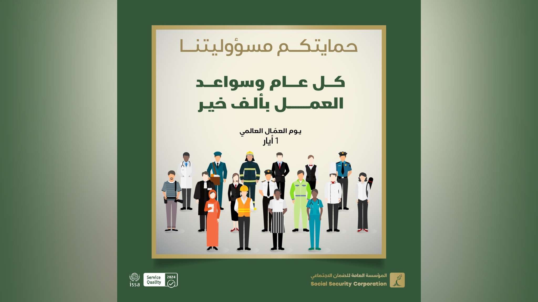 ووجهت المؤسسة تحية تقدير واعتزاز لكافة العمَّال على أرض المملكة بمناسبة يوم العمّال العالمي الذي يُصادف في الأول من شهر أيار من كل عام، مؤكدةً على ضرورة أن يحظى كافة العاملين على أرض المملكة على اختلاف جنسهم أو جنسيتهم بالحماية الاجتماعية وتوفير بيئة عمل آمنة لهم كون الضمان الاجتماعي هو الملاذ الآمن لهم وركيزة أساسية من ركائز الحماية الاجتماعية يوفر أمن الدخل للإنسان العامل وأسرته عند إكماله سن الشيخوخة أو عند توفر شروط استحقاق رواتب العجز أو الوفاة أو التعطل المؤقت عن العمل أو بدل الأمومة، وحمايته عند التعرض لحوادث وإصابات العمل.