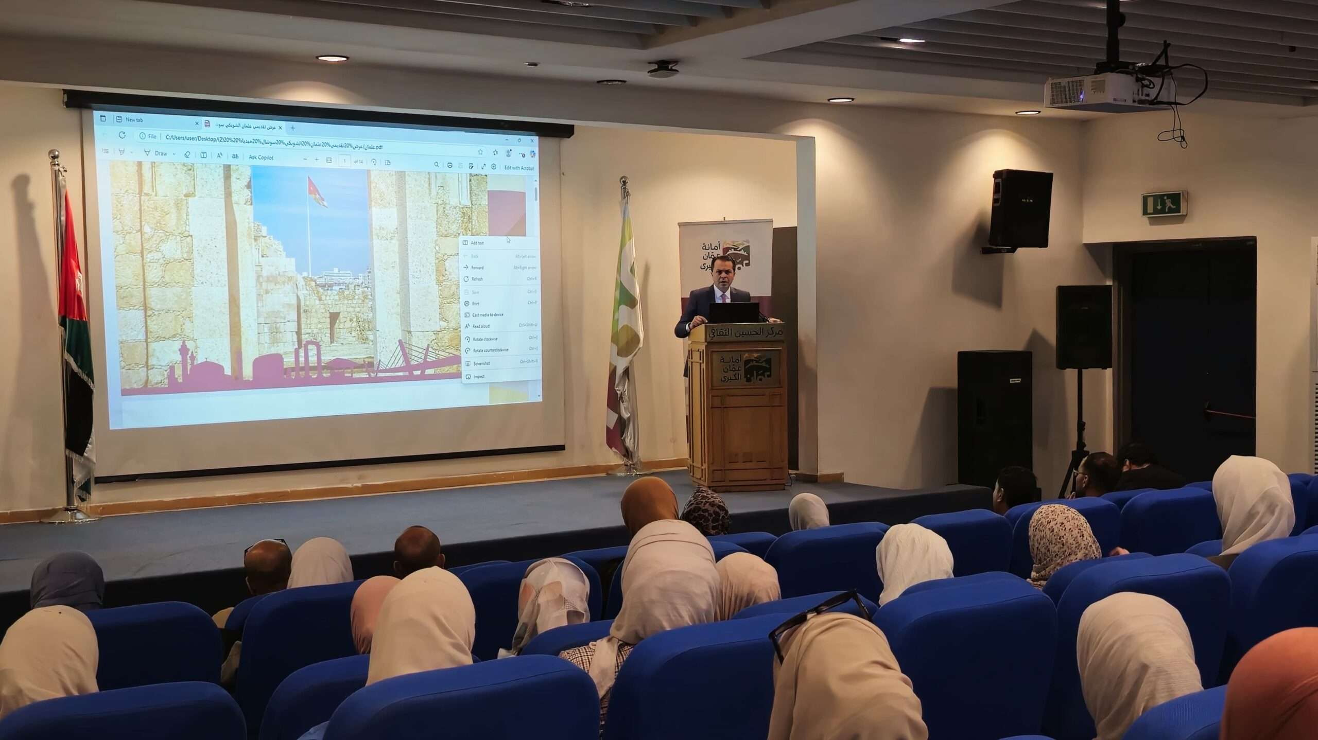 كما قدّم عثمان الشوبكي عرضا حول مواقع التواصل الاجتماعي وادارة المحتوى لأمانة عمّان الكبرى ودورها في الترويج والتواصل الفعّال مع الجمهور