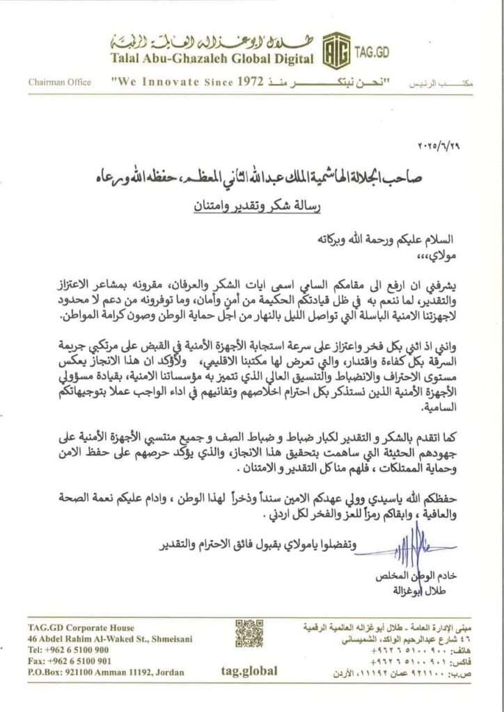 صدى الشعب – أصدر رجل الأعمال الأردني المعروف، طلال أبو غزالة بياناً، عنونه بـ(رسالة شكر و تقدير و امتنان).