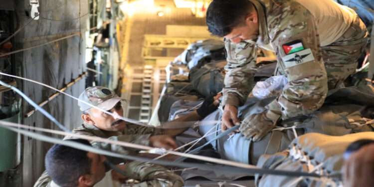 صدى الشعب – نفّذت القوات المسلحة الأردنية – الجيش العربي، الأربعاء، دفعة جديدة من عمليات الإنزال الجوي لإيصال المساعدات الإغاثية إلى الأشقاء في قطاع غزة، بالتعاون مع القوات الجوية لدولة الإمارات العربية المتحدة، استمراراً للجهود الإنسانية المشتركة التي تبذلها المملكة دعماً للفلسطينيين في ظل الظروف التي يمرّ بها القطاع.