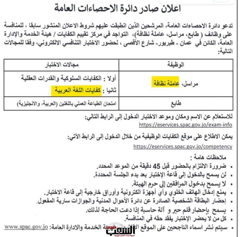 صدى الشعب – أثار إعلان دائرة الإحصاءات العامة عن وظيفة عاملة نظافة موجّهة للجمهور جدلاً واسعاً في الأوساط الأردنية، بعد أن جاء من بين شروط التقديم إتقان اللغة العربية، فهل دائرة الإحصاءات العامة، بعمان أم في لندن لتطلب شرط (كفايات اللغة العربية)..