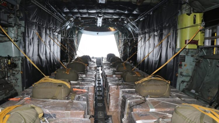وتؤكد القوات المسلحة أنها مستمرة بإرسال المساعدات الإنسانية والطبية عبر جسر جوي لإيصالها من خلال طائرات المساعدات من مطار ماركا باتجاه مطار العريش الدولي أو من خلال عمليات الإنزال الجوي على قطاع غزة أو قوافل المساعدات البرية.