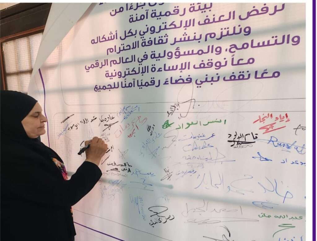 واختتمت فعاليات المبادرة بتأكيد المشاركين وأعضاء من المجلس البلدي التزامهم بمناهضة العنف الرقمي ضد النساء والفتيات، وذلك من خلال التوقيع على وثيقة التزام جماعية، تعبيراً عن التضامن المجتمعي ورفض جميع أشكال العنف القائم على النوع الاجتماعي في الفضاء الرقمي، وتأكيداً على السعي نحو بناء مجتمع رقمي آمن يحترم كرامة الجميع.