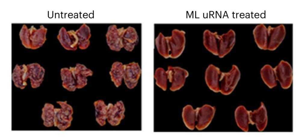 في نماذج سرطان الرئة، استطاع mRNA وحده أن يقلل عدد العُقيدات الورمية ويحسن معدلات البقاء.