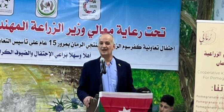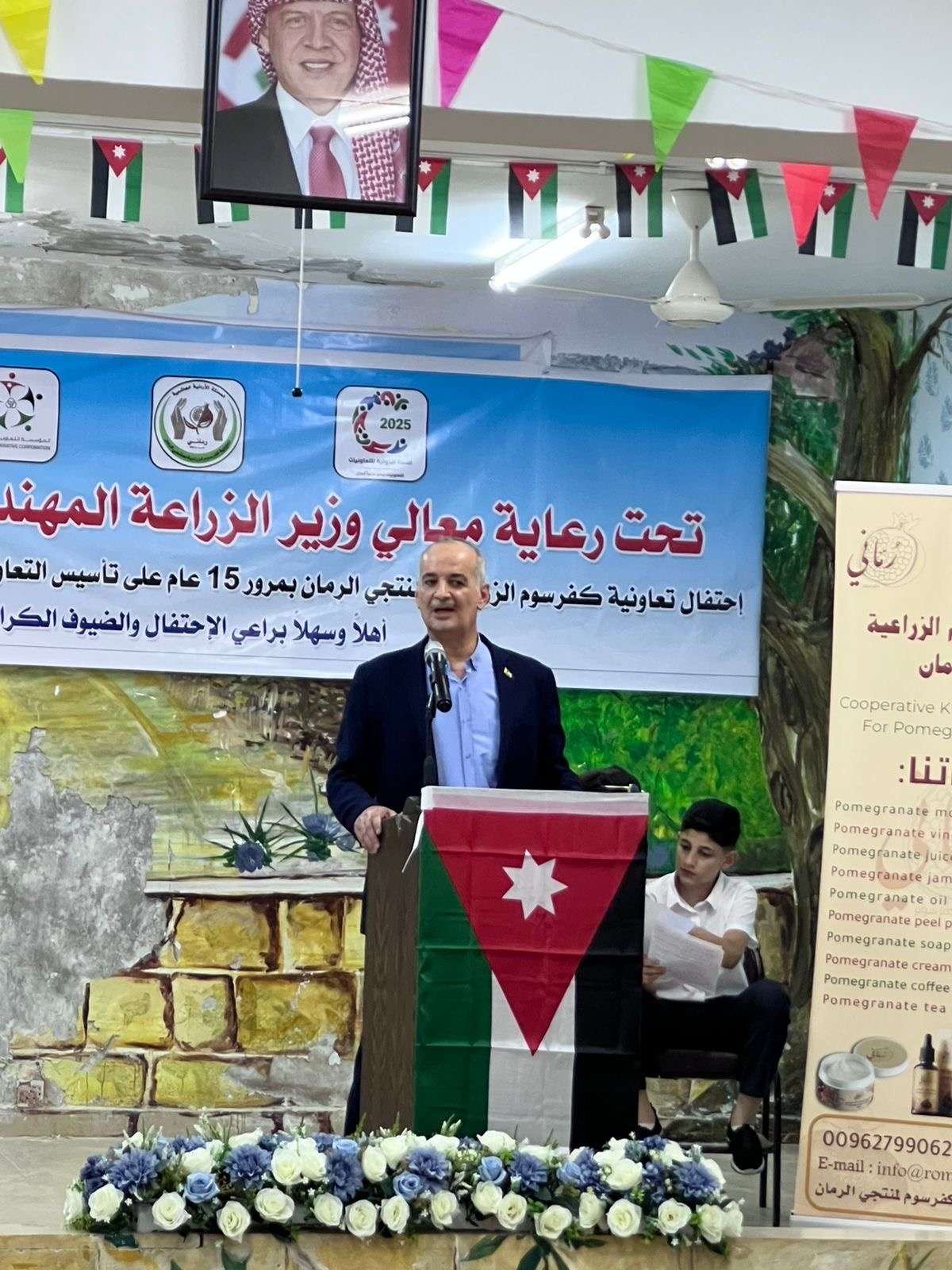 صدى الشعب – مندوباً عن وزير الزراعة المهندس خالد الحنيفات، رعى  مدير عام المؤسسة التعاونية الأردنية عبد الفتاح الشلبي، اليوم الخميس،  الإحتفال الذي أقامته تعاونية  كفرسوم الزراعية لمنتجي الرمان بمناسبة مرور 15 عاما على تأسيسها  بالتزامن مع إعلان السنة الدولية للتعاونيات 2025.