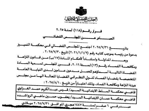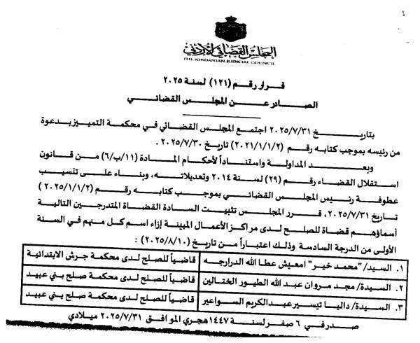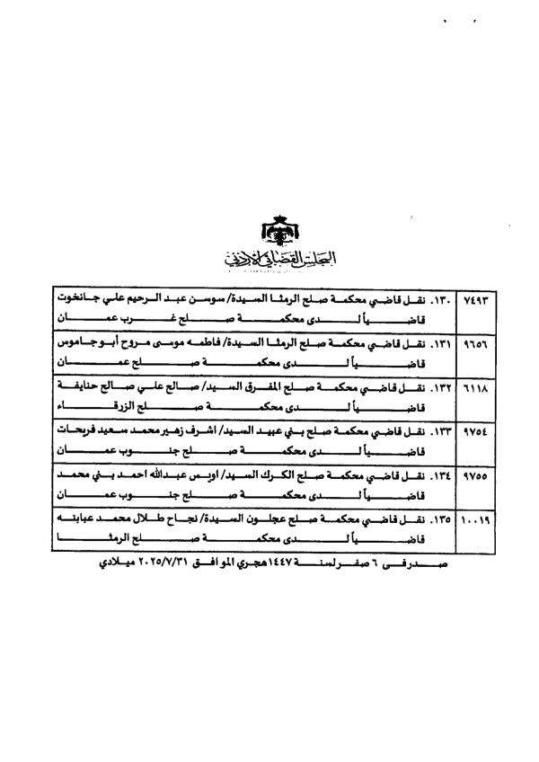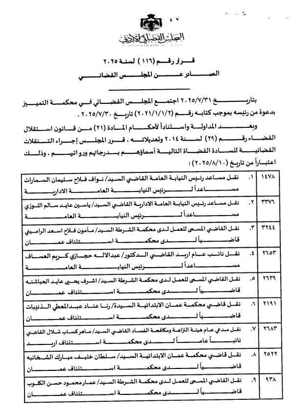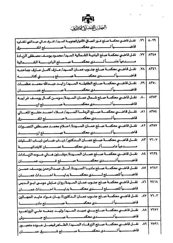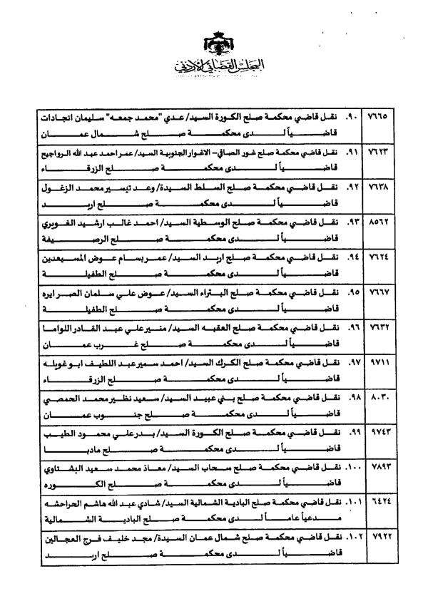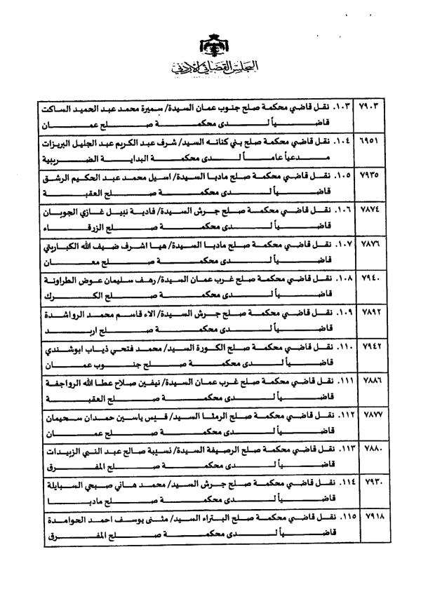 صدى الشعب - قرر المجلس القضائي، اليوم الخميس، إجراء عدد من التنقلات والتي شملت عدداً من القضاة العاملين في مختلف محاكم المملكة، وتالياً الأسماء: