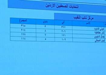 Read moreDetailsصدى الشعب - أظهرت نتائج انتخابات نقابة الصحفيين، فوز طارق المومني بمنصب نقيب الصحفيين الأردنيين، بعد حصوله على 531 صوتاً....