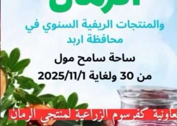 Read moreDetailsصدى الشعب – اربد _عرين مشاعلة تنطلق غدًا الخميس فعاليات مهرجان الرمان والمنتجات الريفية السنوي لعام 2025، الذي تنظمه جمعية...