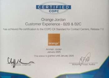 Read moreDetailsصدى الشعب - جددت أورنج الأردن شهادة COPC العالمية للعام 2025، وللسنة السادسة على التوالي، تأكيداً على ريادتها وتميّزها في...
